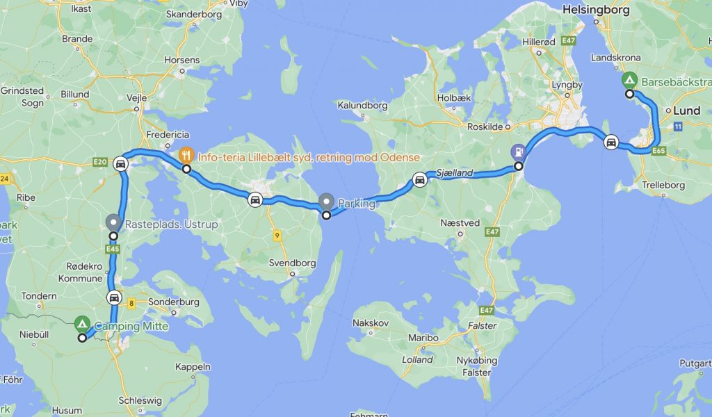 Heute geht es durch Dänemark. Wir haben im Voraus beschlossen in einem Stück durch Dänemark, über die Størebealt Brücken und die Øeresundbrücke direkt bis Schweden durchzufahren.